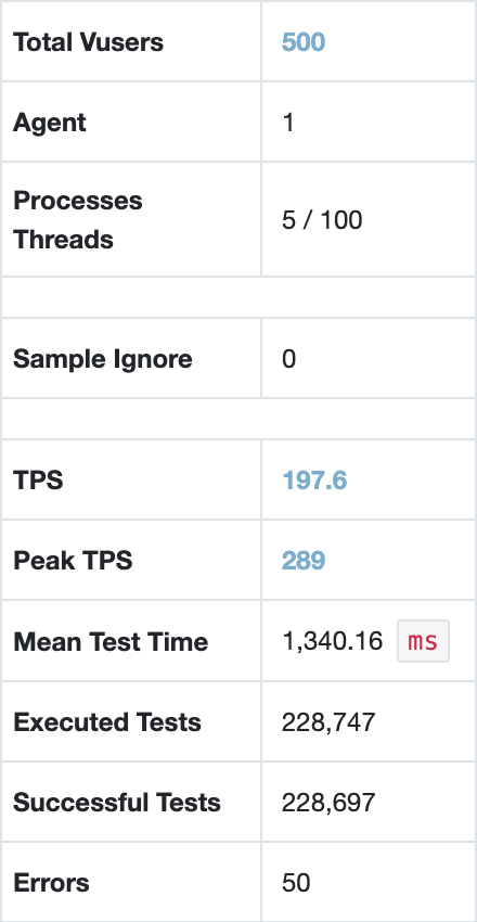TPS, 평균 응답 시간 등을 확인할 수 있습니다.